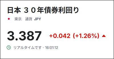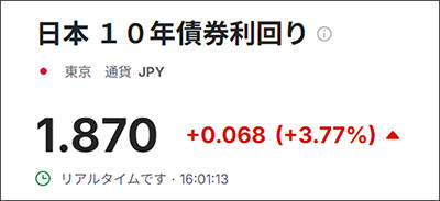 另据共同社等多家日媒1日消息,截至当天东京时间16时01分(北京时间15时01分),日本10年期国债收益率上涨6.8个基点至1.870%,30年期国债收益率上涨4.2个基点至3.387%,创历史新高。